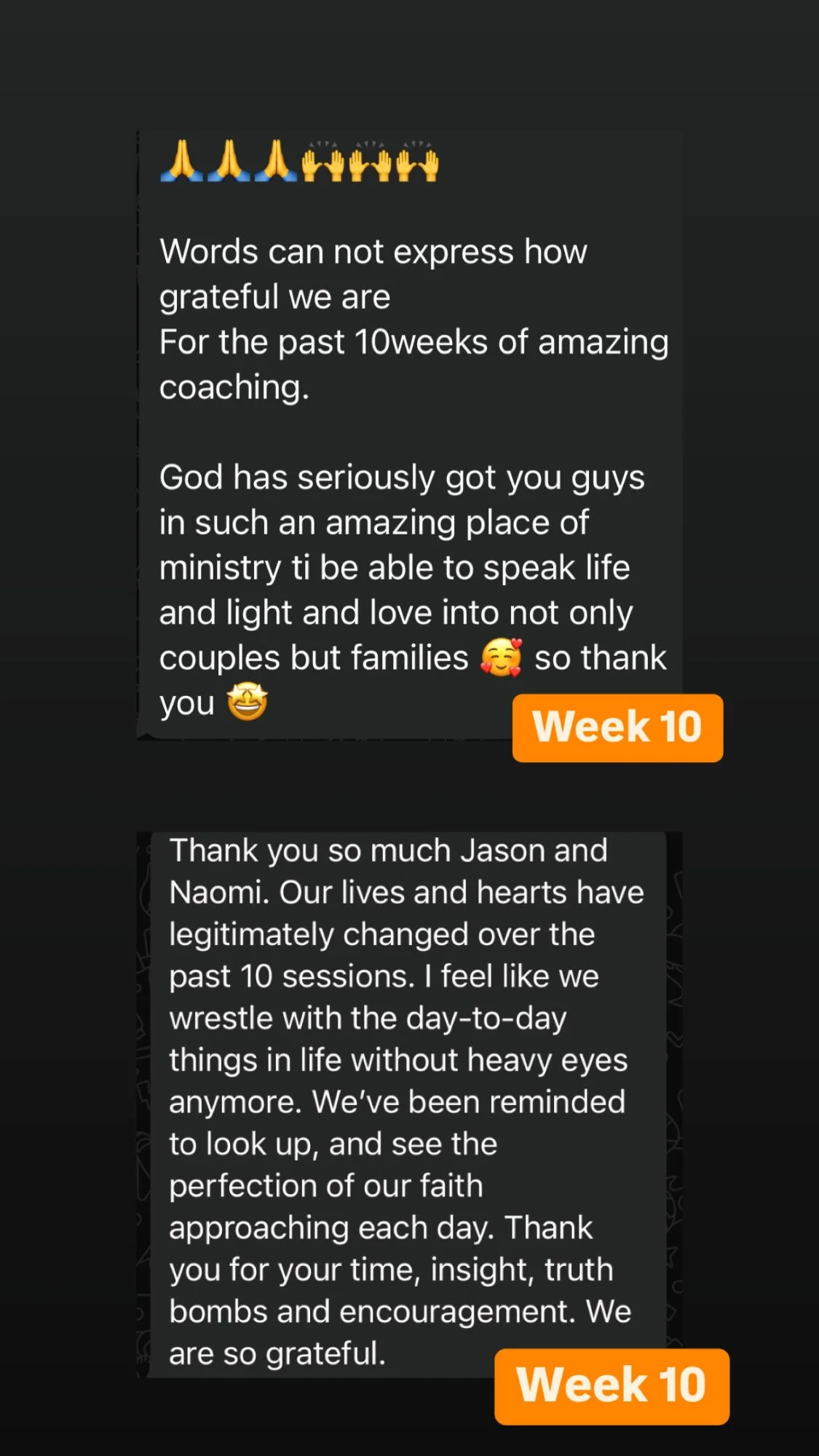 Access to ALL of our personal relationship resources that will assist you in an on-going transformation